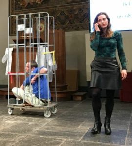 De avond werd ingeleid door een ludieke presentatie van Anne van Veen en Victoria de Leeuw.  Zij schetsten in een theatrale setting de geschiedenis van dierproeven en lardeerde dit met argumenten waarom we nu inmiddels wel zonder kunnen. De toon van de avond was gezet. Zeker ook omdat presentator Diederik Jekel alles soepel en met de nodige humor aan elkaar praatte en omdat, onze eigen, Saskia natuurlijk ook over de nodige positieve ontwikkelingen vertelde.